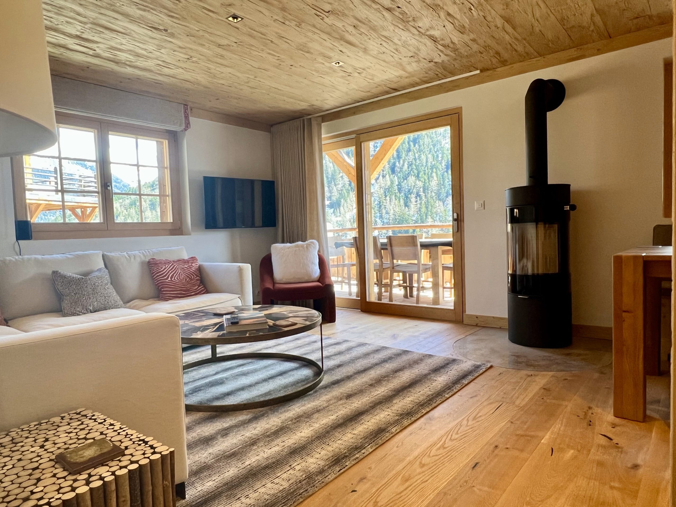 With its large balcony, breathtaking views of the Moiry valley and immaculate finish, this apartment offers the highest level of comfort in the heart of the Val d’Anniviers. Enjoying an ideal location close to the piste and the centre of the village, it is part of the prestigious “Les Chalets d’Adélaide” development built in 2021. The interior skilfully combines traditional warmth with a fresh contemporary flourish. Rough-hewn wood panelling, oak floors and a well-appointed kitchen combine to offer an immaculate and luxurious residence.